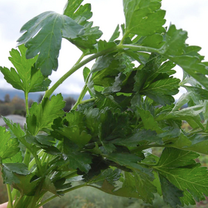 Flat Leaf Italian Parsley (Petroselinum crispum) is widely cultivated easy-to-grow culinary herb. Dried or fresh, it is an essential spice for soups and stews, meat and vegetable dishes. Nutritious and high in vitamins A, C, folic acid, and antioxidants. Eat it straight from the garden fall through spring when it's the sweetest and most delicious.