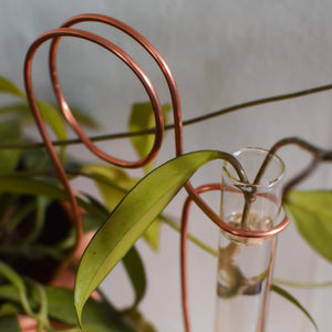 Each side car comes with a copper stake "side car" to put in the plant and a 45 ml glass test tube. Although copper will not rust, it will tarnish over time and change color. While Copper and Needle aims to make every product look identical, due to the handmade nature of this product, the color, shape, and size may vary slightly.