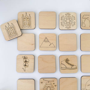 This state themed matching memory game makes an enchanting addition to your family's game collection! With 24 beautifully crafted wooden tiles featuring 12 pairs of state-inspired motifs, this game promises endless hours of fun and cognitive stimulation.
