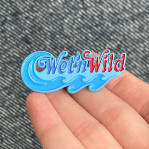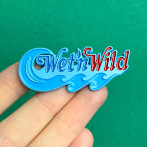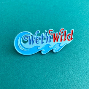 Inspired by the water park on Las Vegas Blvd that was so popular for locals in the 1990's. RIP Wet n Wild!! This pin measures 2" wide.