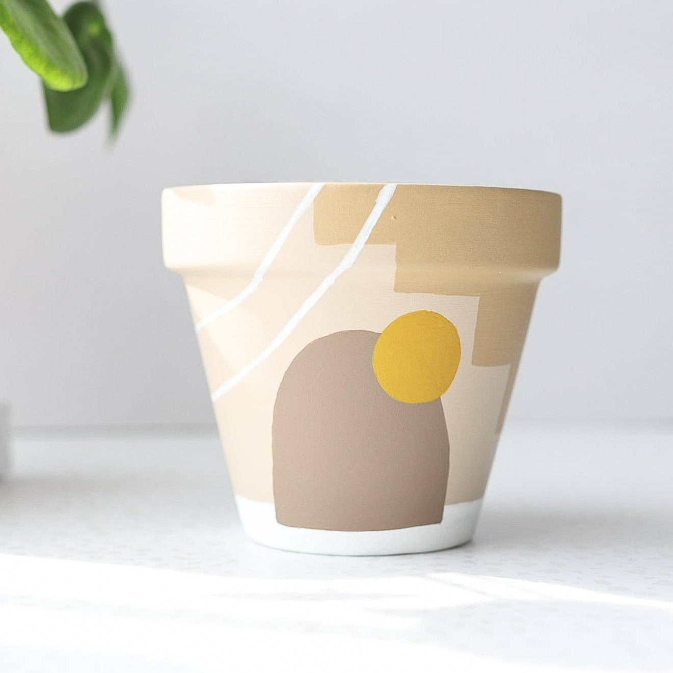 Earthy Abstract Pot | Hand Painted Terracotta Pot with Drainage Hole