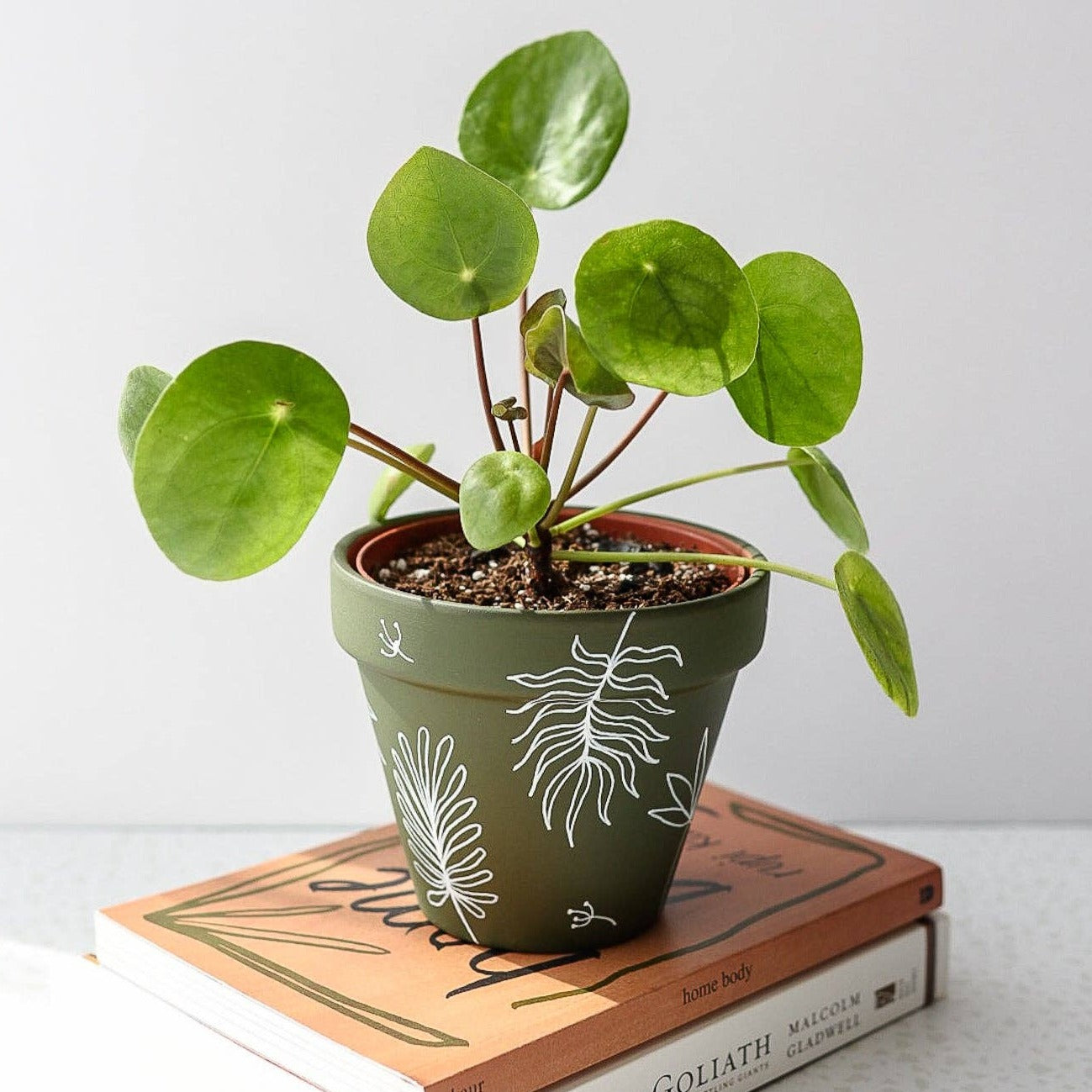 Lush Green Botanical Pot | Hand Painted Terracotta Pot with Drainage Hole