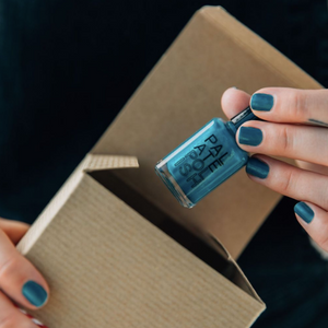 This listing is for one full sized bottle of nail polish (0.5 oz/15 ml) in Taffy, an iridescent blue/green.