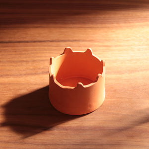 About 2" tall X 3" wide. Red clay left unglazed for matte finish. One small drainage hole.
