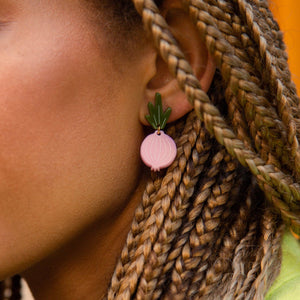 Etched and hand-painted acrylic Onion Earrings with sterling silver posts.