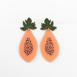 Etched and hand-painted acrylic Papaya Earrings with sterling silver posts.