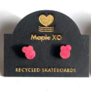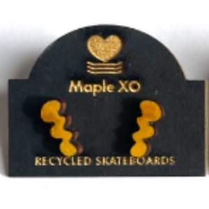 MapleXO is a crew of lady skateboarders who recycle skateboards using traditional powertools and some good old fashioned elbow grease. They are fueled by their love for skateboarding and inspired by the beauty in the boards themselves." MapleXO has been recycling skateboards into jewelry for over a decade. Having pioneered a niche industry turning would-be waste into brand new products, MapleXO's mission has saved thousands of skateboards from landfills with each piece telling its own unique story. Their goal is to give back to skateboarding by reducing its carbon footprint and helping old boards live on forever.